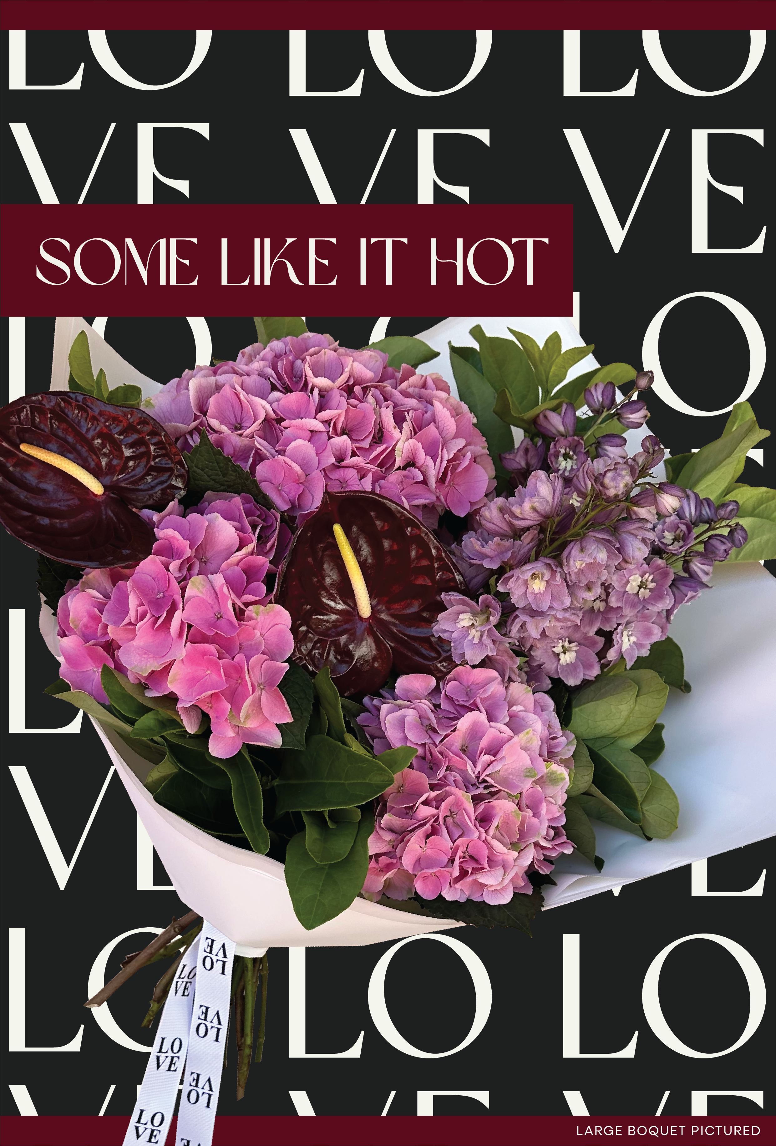 SOME LIKE IT HOT is a sexy bunch for the lovers, this spicy bouquet is full of reds, pinks and purples, hot hot!!