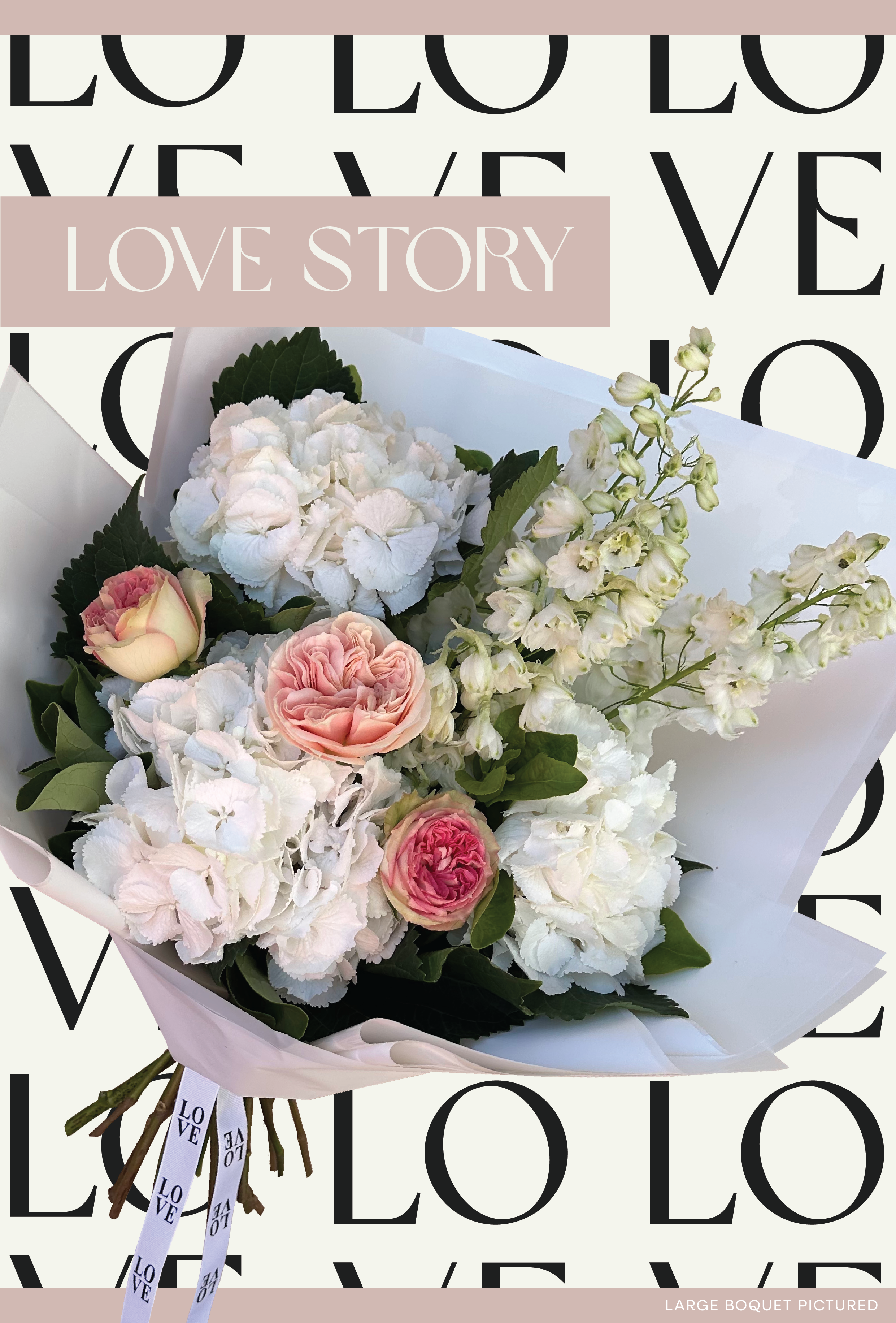 LOVE STORY is for our long-term lovers, your love is sweet, soft and something to be cherished, this bunch is full of whites and soft pastel pinks, so sweet!